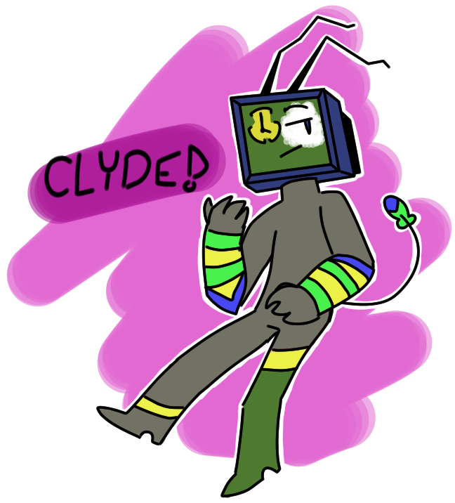 Biography![]() Clyde is the goddess of time and one of the first created by the Seer after the creation of the higher deities (such as life and death). She is time itself and is constant. Although she doesn't visit Earth often, she likes to tend to the garden she curated in X-Tee's backyard. AboutName:ClydeAge:ImmortalPronouns:She/TheySex/Gender:FemaleOccupation:God of TimeSpecies:Tv-HeadHeight:5'3"Abilities:Levitation, can summon small asteroids, manipulation of time (rarely used)RelationsCharacter relationships, whether they're platonic or not. Click the characters to be taken to their pages. ![]() CalA fellow god and sometimes a nuisance, Clyde tolerates Cal. Cal has given Clyde access to his domain and she's able to come and go as she pleases. Although it's not like he had a choice in the matter, since she needs access to all the other gods domains in order to give the higher deities updates on Heavens operations. Though that doesn't stop sokme from barring her enterance, at least for a little while.