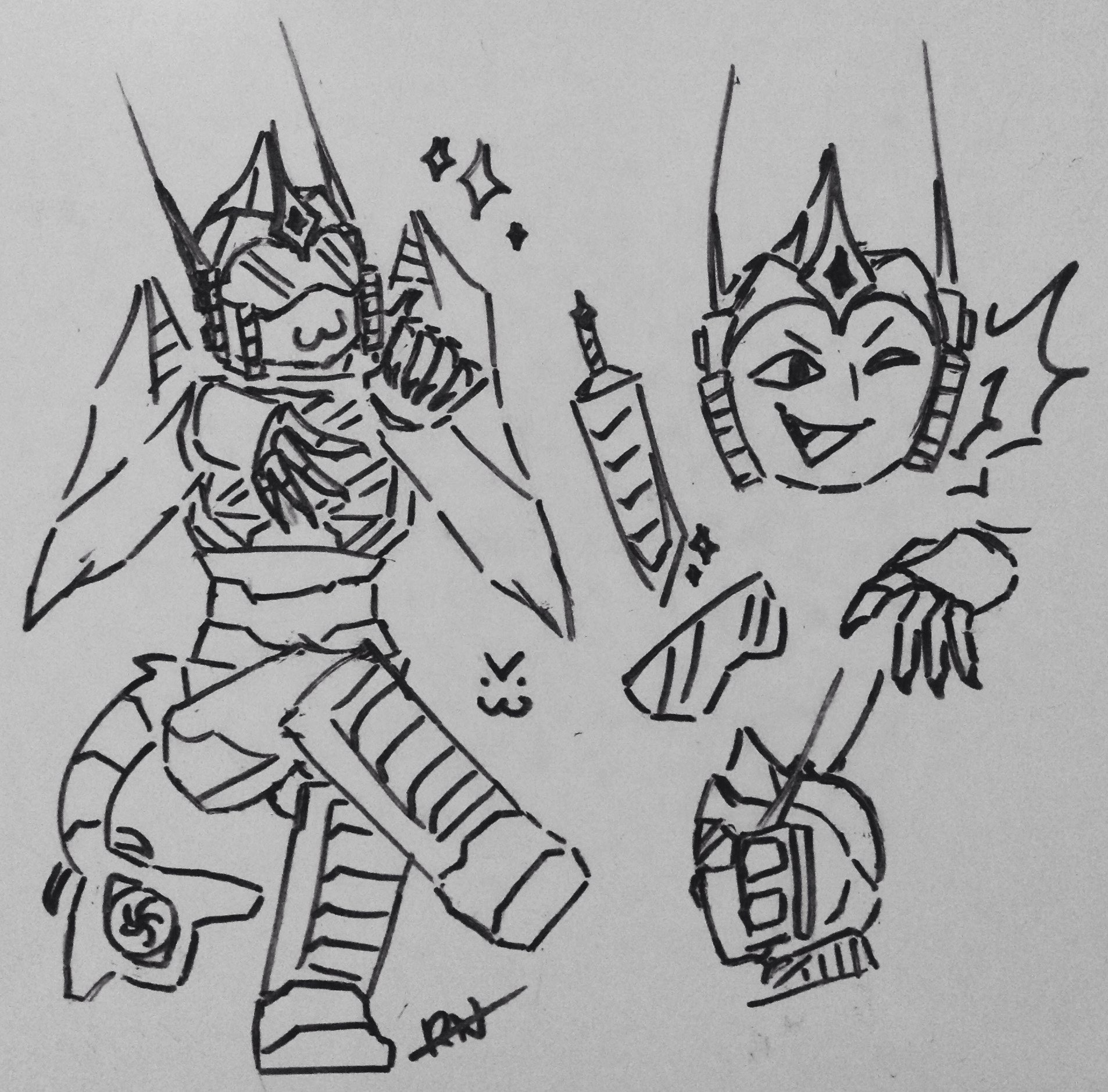 Forged on Cybertron in an unknown hotspot 5 million years ago, Underscore was already failed by the system the senate put in place. Having a spaceship alt-mode doesn't land you a job. When the decepticon resistance started their rallies, Underscore- whom was doomed by the system due to his unorthodox alt mode- joined their ranks with the promise of a better life under equality. He believed that the Decepticon cause was just as he was unfairly treated by many other Cybertronians under his alt-mode at the time.